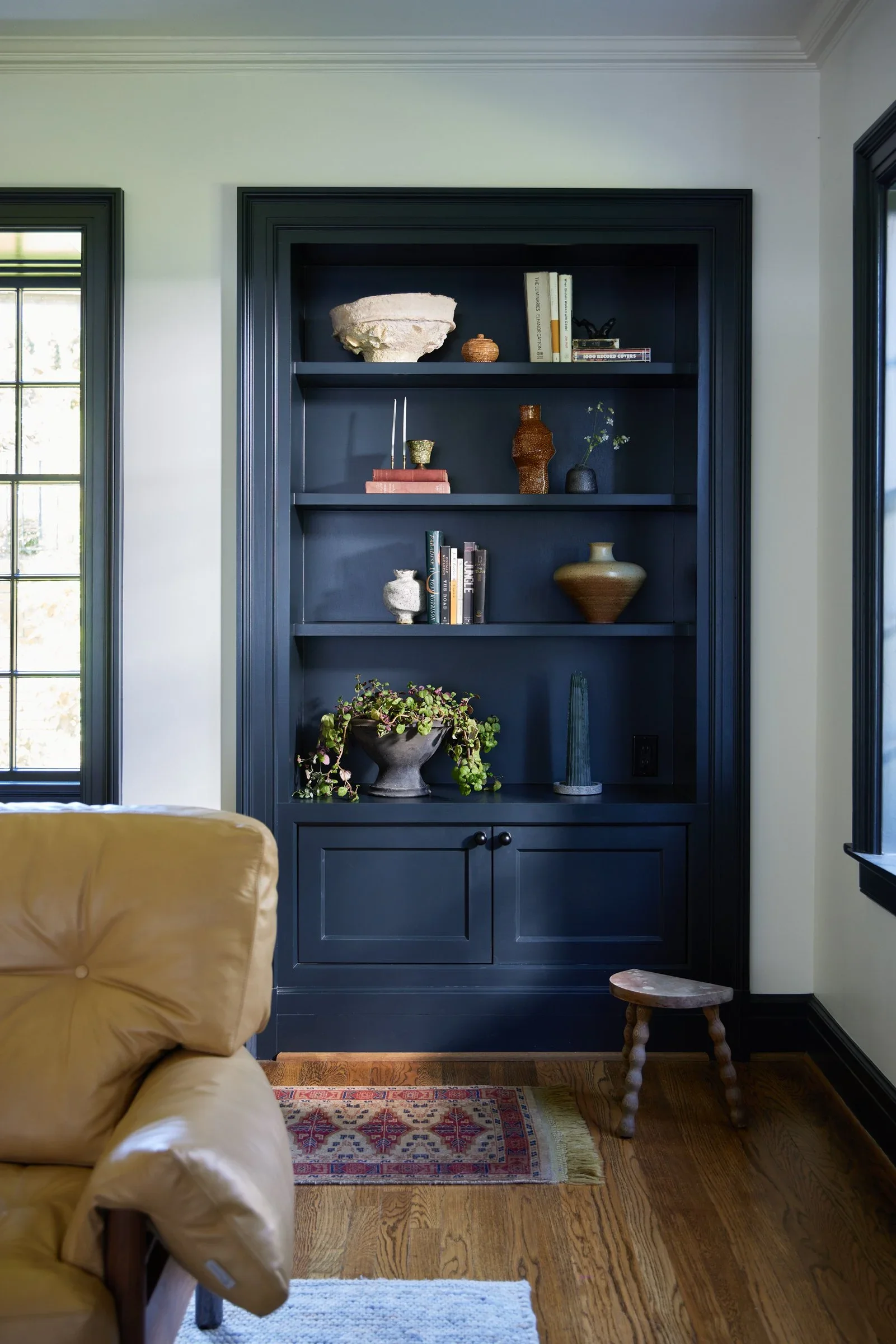 Built-in shelving and seating to increase function and add character