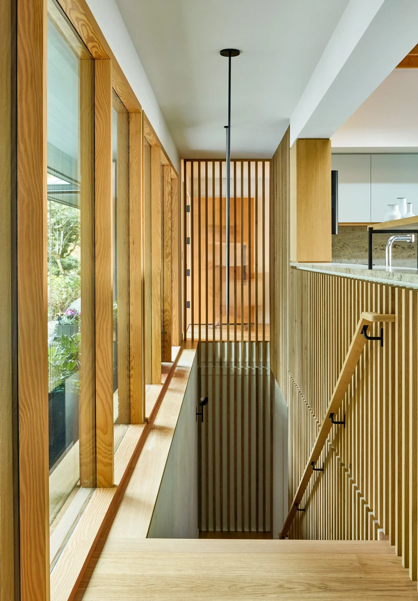 In collaboration with Green Gables Design & Restoration, our team at Bright Designlab was tasked with a complete interior transformation of this 1954 midcentury home, including a full architectural finish package. The primary goal: to rework the layout in a way that maximized the home's sweeping views of Portland’s West Hills - starting with the strategic relocation of the central staircase and a comprehensive kitchen reconfiguration.