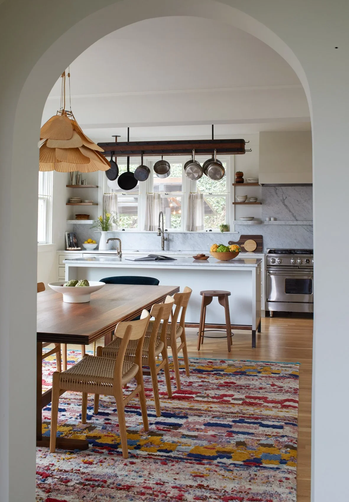 - The striking 1970s Ingo Maurer “Uchiwa” pendant in the Dining Room