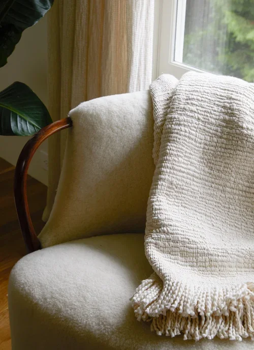 - A Viggo Boesen curved sofa in the Primary Bedroom